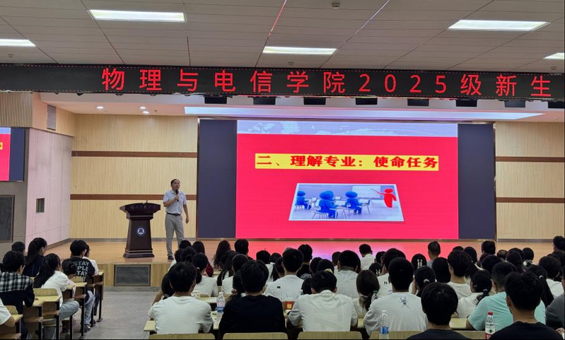 2025年9月16日上午,必赢网络游戏平台物理与电信学院2025级新生开学典礼在北区报告厅隆重举行。304名本研新生正式成为光荣的黄师物电人。必赢网络游戏平台全体领导班子成员、退休老教授林桂生教授、学院教师代表、全体辅导员、新生班主任老师,以及2025级全体新生共同出席。典礼由学院党委副书记王世伟主持。