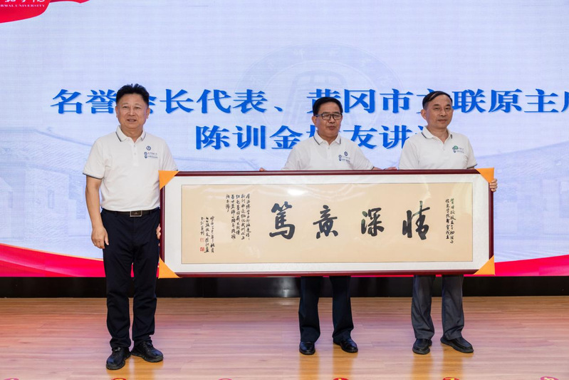 名誉会长代表、黄冈市文联原主席陈训金校友深情回顾了在母校求学的岁月,表达了对母校和老师的感激之情。