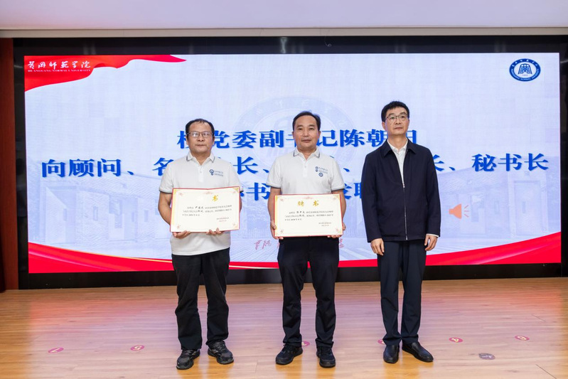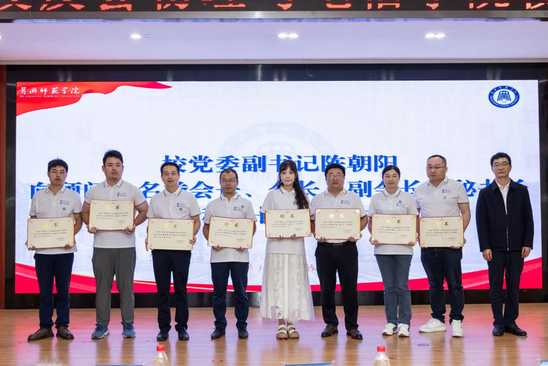 校党委副书记陈朝阳为校友分会顾问、名誉会长、会长、副会长、秘书长和副秘书长颁发聘书。