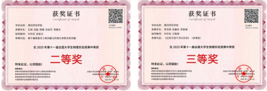 必赢网络游戏平台学子在2025年第十一届全国大学生物理实验竞赛(创新)中斩获佳绩