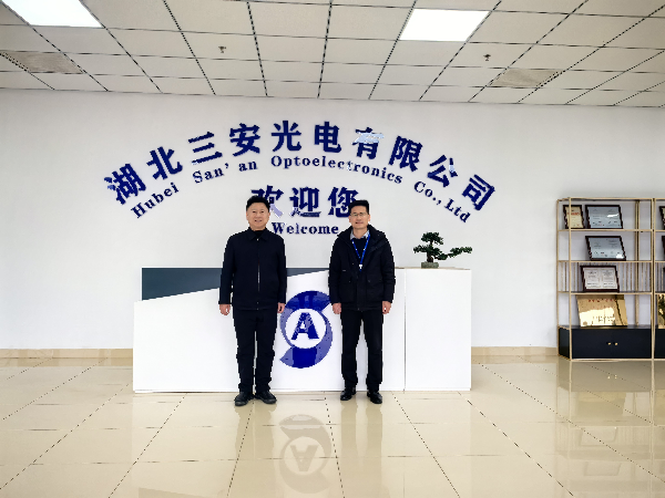 3月20日上午,卢年桥一行首先来到位于鄂州的湖北三安光电有限公司。公司人力资源部经理夏春晖对卢年桥一行的到访表示热烈欢迎,并陪同参观了企业展厅及生产车间,详细介绍了公司的发展历程、核心业务、技术创新成果以及未来人才需求规划。卢年桥介绍了学院的专业设置、办学特色及2026届毕业生的整体情况。双方围绕共建实习实训基地、开展订单式人才培养、学生就业等内容进行了深入探讨,并初步达成多项合作意向。卢年桥表示,希望通过此次走访,精准对接企业用人需求,进一步优化人才培养方案,为企业输送更多“用得上、留得住、发展好”的高素质应用型人才。